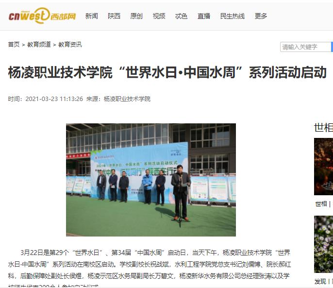 今年“世界水日”的主题是“珍惜水·爱护水”,“中国水周”的主题是“深入贯彻新发展理念,推进水资源集约安全利用”。350vip浦京集团官网作为全国水利高等职业教育示范院校,主题是“发展节水型校园,引领珍惜水,爱护水的良好风尚”。“中国水周”期间,学校将举行节水知识讲座、参观渭河杨凌段生态综合治理工程、发放节水宣传册等系列活动。