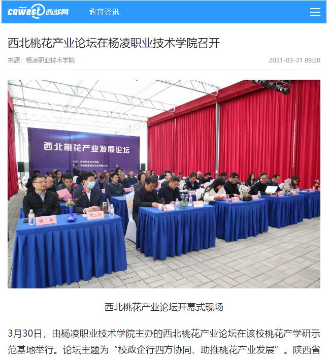 开幕式上,杨凌职院党委书记陈宁在致辞中指出,作为本次论坛的主办单位,我们将坚定不移的贯彻习近平生态文明思想,积极践行“绿水青山就是金山银山”的理念,坚持绿色崛起,推动产业振兴。希望各位领导和专家在桃花产业发展上多为我们把脉支招,同时也希望与兄弟院校、社会各界加强合作,共同推动西北地区桃花产业的健康发展。