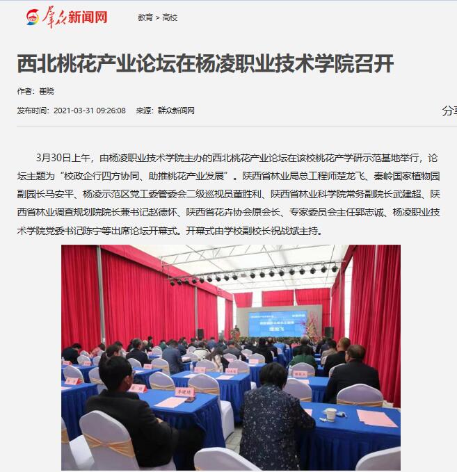 开幕式上,杨凌职院党委书记陈宁在致辞中指出,作为本次论坛的主办单位,我们将积极践行“绿水青山就是金山银山”的理念,坚持绿色崛起,推动产业振兴。希望各位领导和专家在桃花产业发展上多为我们把脉支招,同时也希望与兄弟院校、社会各界加强合作,共同推动西北地区桃花产业的健康发展。