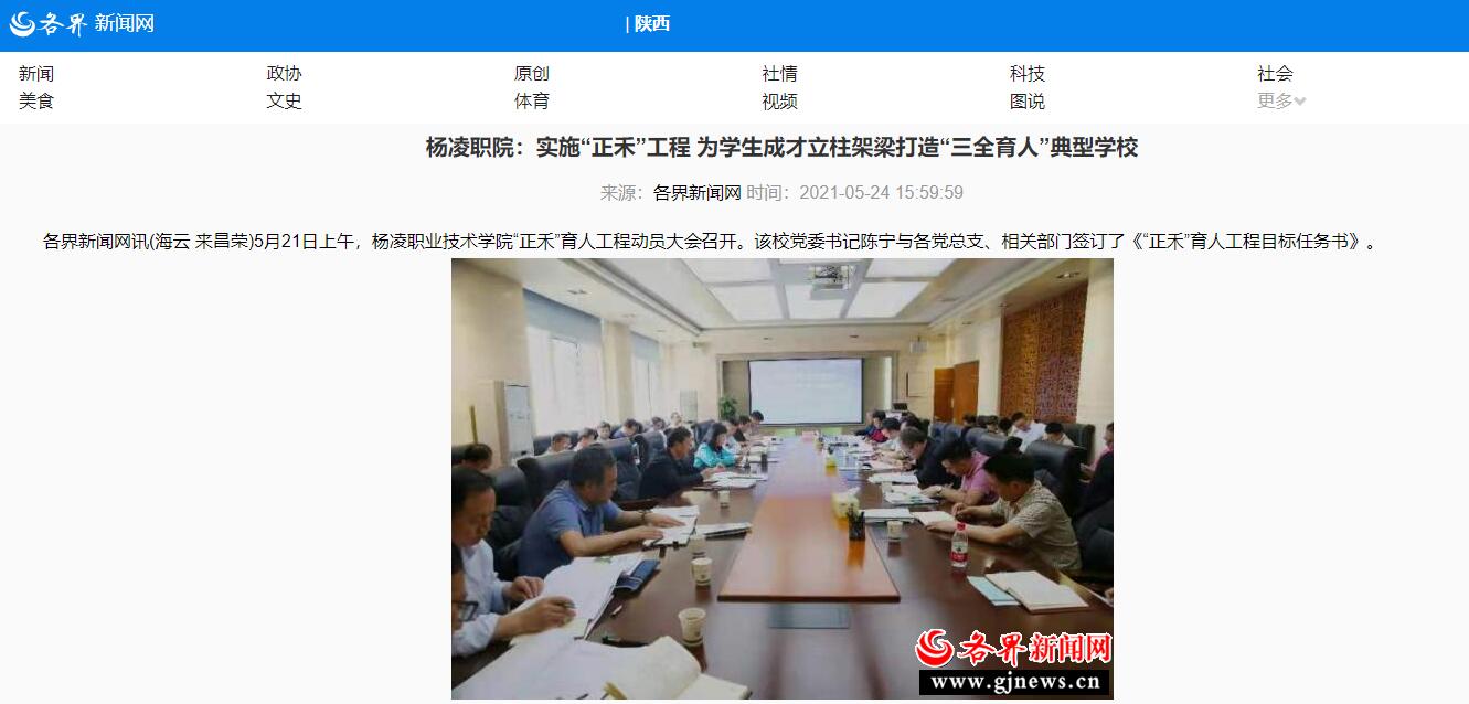 “正禾”育人工程是杨凌职院围绕加强党建工作、推进“三全育人”和深化思政课教学改革三大目标,于今年提出的一项战略性、系统性工程。该工程通过系统梳理新时代大学生的培养目标,有针对性地提出“灯塔引航”“爱国力行”“德种心田”“新知视野”“昂扬奋进”“行为养成”“人文浸润”“耕读修身”“饮水思源”“精技强能”10个项目,通过开展60项支撑活动(包括14项必选活动、46项认领活动),贯穿大一成长教育、大二成才教育、大三职场教育,推进全方位育人;通过建立学校各单位、家庭、社会、学生“四位一体”育人机制,通过实行思政课教师与二级学院结对制度,推进全员育人;通过贯穿“党建+X”工作理念,发挥党组织的战斗堡垒作用和党员先锋模范作用,推进全过程育人,着力在立柱架梁、特色开路、落地见效上下功夫。其中,必选活动由学校相关部门牵头,结合上级有关要求和学校工作实际,制定具体落实方案;认领活动由各党总支和部门结合实际主动认领,并制定具体落实方案。每项活动赋有相应“正禾积分”,学生参加各项活动获得的积分情况计入个人《“正禾”育人工程成绩单》,最终根据德育学分评分标准转化成学分,纳入学生德育得分。