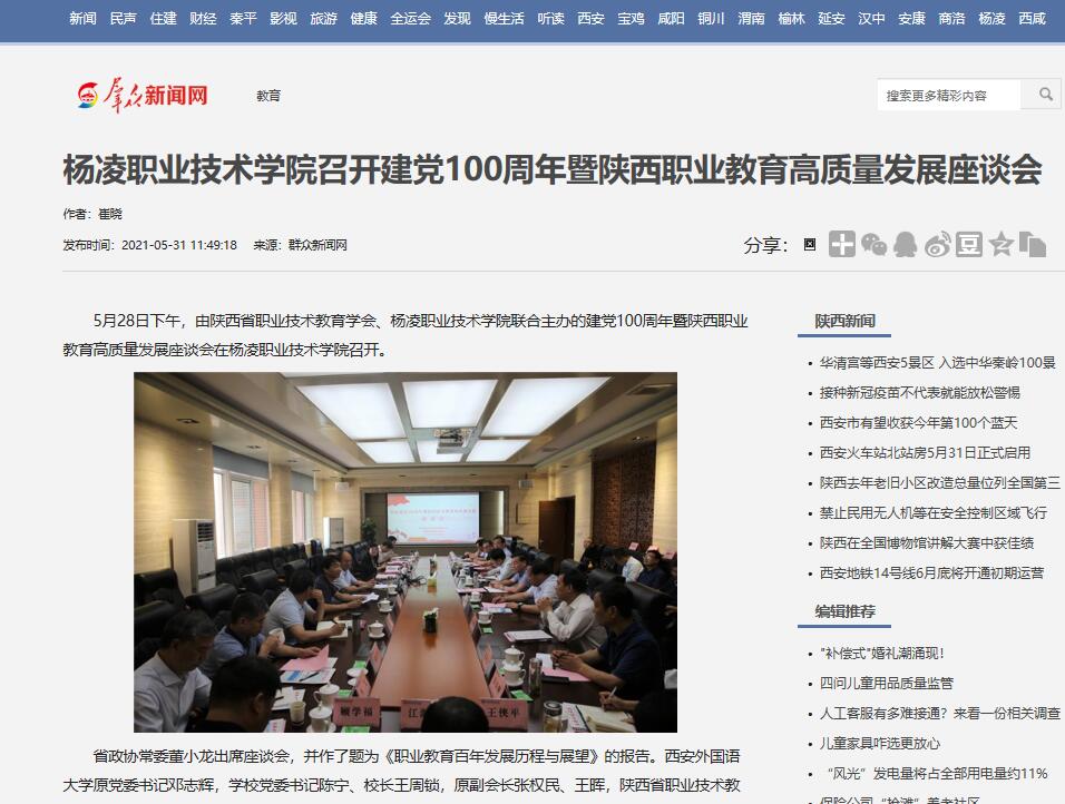 5月28日下午,由陕西省职业技术教育学会、350vip浦京集团官网联合主办的建党100周年暨陕西职业教育高质量发展座谈会在350vip浦京集团官网召开。