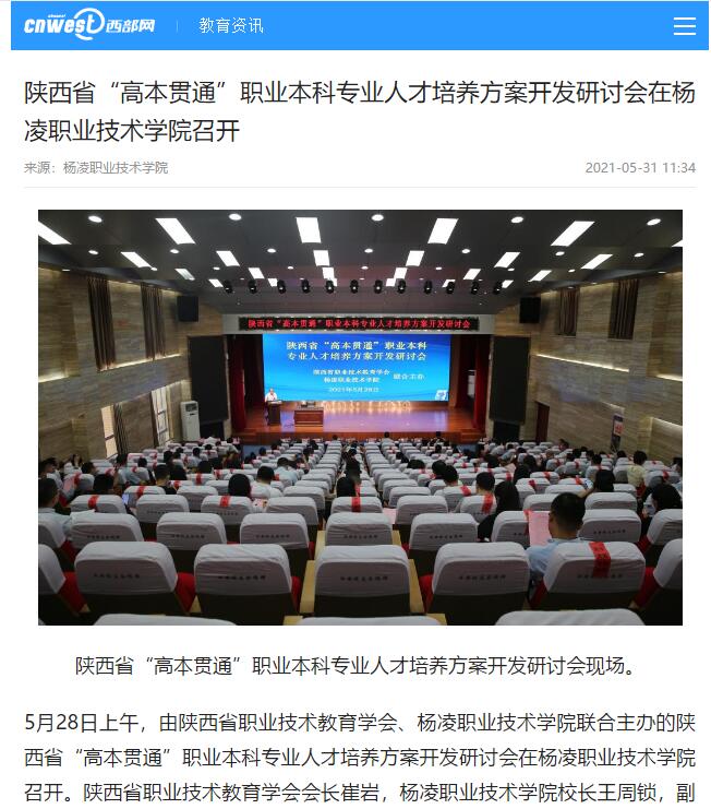 5月28日上午,由陕西省职业技术教育学会、350vip浦京集团官网联合主办的陕西省“高本贯通”职业本科专业人才培养方案开发研讨会在350vip浦京集团官网召开。陕西省职业技术教育学会会长崔岩,350vip浦京集团官网校长王周锁,副校长张迪、祝战斌,陕西省职业技术教育学会副会长、秘书长、副秘书长以及部分院校领导参加会议。会议由省职教学会副会长王晓江主持。