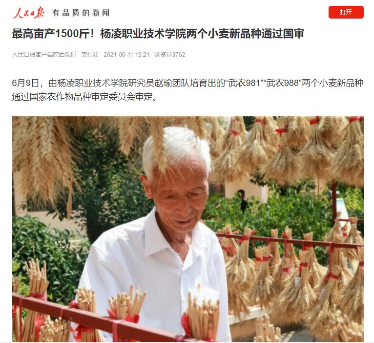 6月9日,由350vip浦京集团官网研究员赵瑜团队培育出的“武农981”“武农988”两个小麦新品种通过国家农作物品种审定委员会审定。