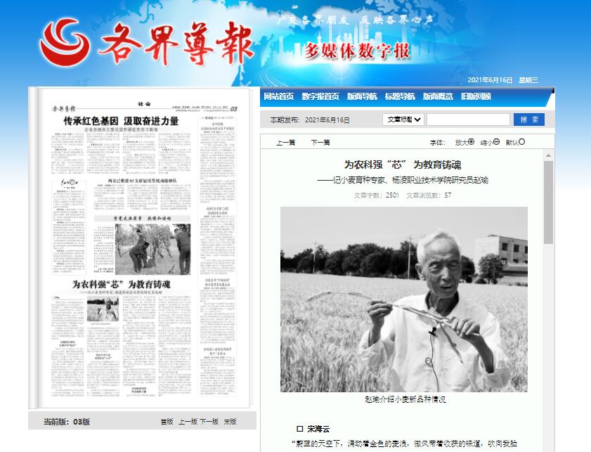 ——记小麦育种专家、350vip浦京集团官网研究员赵瑜