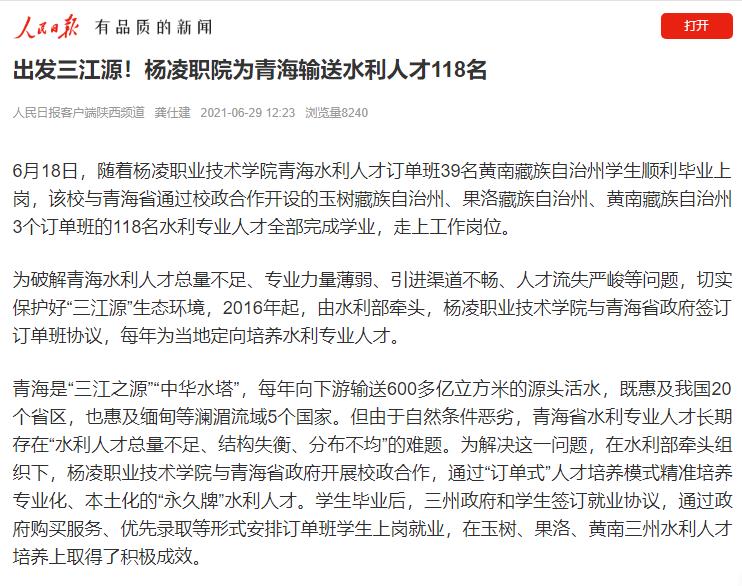 近年来,水利人才订单班模式先后受到中央领导和青海省委、省政府主要领导的批示肯定,水利部《“订单式”人才培养为地区脱贫提供人才支持——青海省玉树藏族自治州“订单式”水利人才培养案例》荣获“全球减贫案例有奖征集活动”最佳减贫案例。