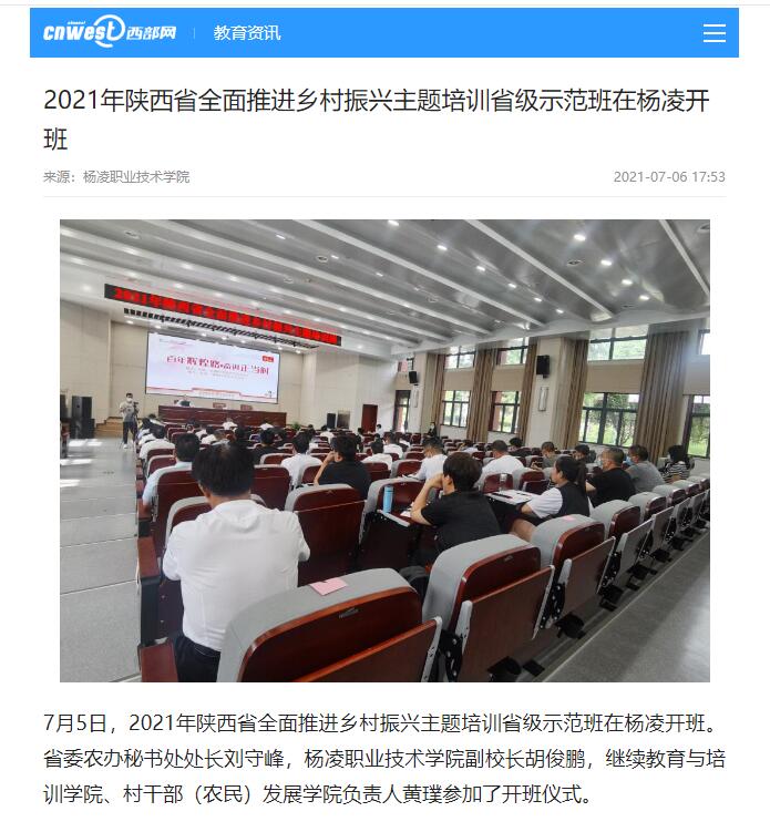7月5日,2021年陕西省全面推进乡村振兴主题培训省级示范班在杨凌开班。省委农办秘书处处长刘守峰,350vip浦京集团官网副校长胡俊鹏,继续教育与培训学院、村干部(农民)发展学院负责人黄璞参加了开班仪式。