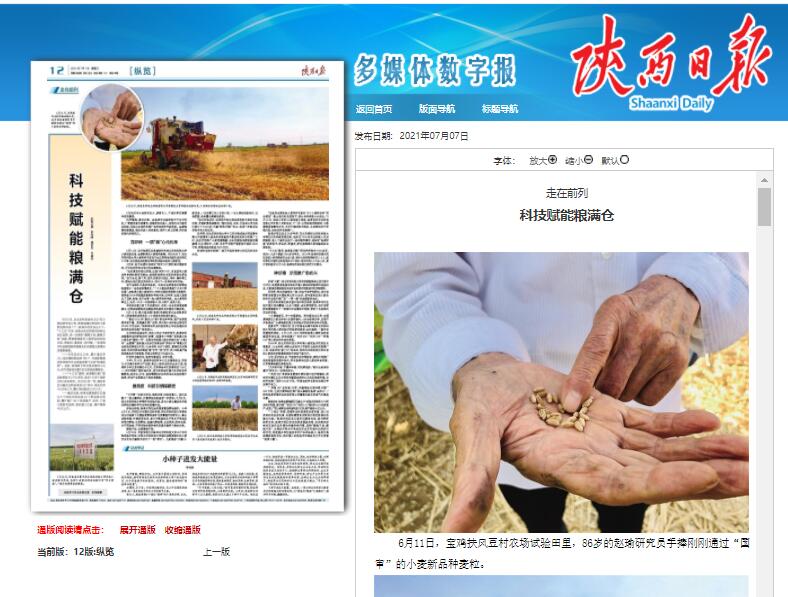 ——截至目前,杨凌在黄淮麦区已建立3个试验示范站和22个新品种示范园,累计推广46个优质高产、多抗、广适小麦新优品种,面积超2亿亩,增产粮食40亿公斤。