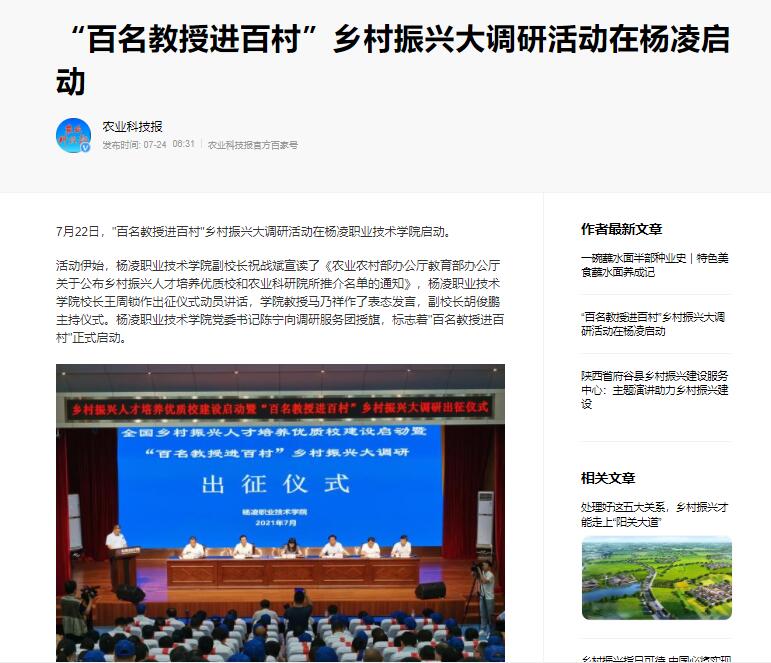 据了解,"百名教授进百村"活动是依托350vip浦京集团官网省级科技特派员、产业体系专家、"博士+高职生工作室"、"教授+科研推广"工作室等已有成功载体,结合学校产学研基地的彬县和凤县、"双百工程"结对帮扶麟游县、"驻村联户"帮扶太白县等地,在现有产学研基地示范带动基础上,以"守望乡村、振兴乡村"为使命,根据陕西省相关100个县村产业发展需要,以学校村干部学历班成员为联络员,开展乡村振兴技术服务与调研跟踪一系列"支农助农"活动。