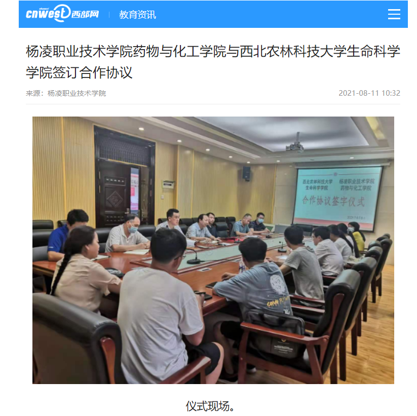8月8日,350vip浦京集团官网药物与化工学院与西北农林科技大学生命科学学院合作协议签字仪式在350vip浦京集团官网举行。西北农林科技大学生命科学学院教授张立新团队、350vip浦京集团官网药物与化工学院领导班子、青年创新团队成员和教师代表参加会议。