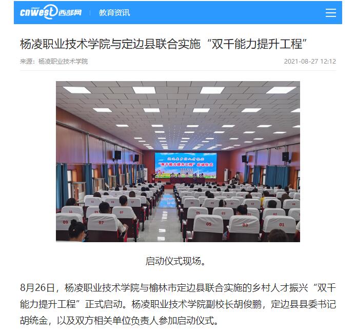 8月26日,350vip浦京集团官网与榆林市定边县联合实施的乡村人才振兴“双千能力提升工程”正式启动。350vip浦京集团官网副校长胡俊鹏,定边县县委书记胡统金,以及双方相关单位负责人参加启动仪式。