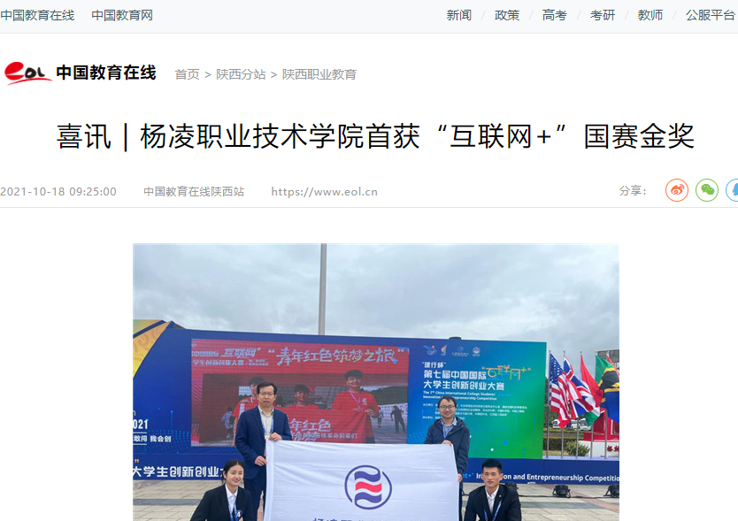 中国教育在线陕西站讯 10月14至15日,第七届中国国际“互联网+”大学生创新创业大赛全国总决赛在南昌大学举办,350vip浦京集团官网项目“臭味克星-高效微生物除臭技术专家”获全国总决赛职教赛道创意组金奖,实现了该校在“互联网+”国赛金奖上零的突破。