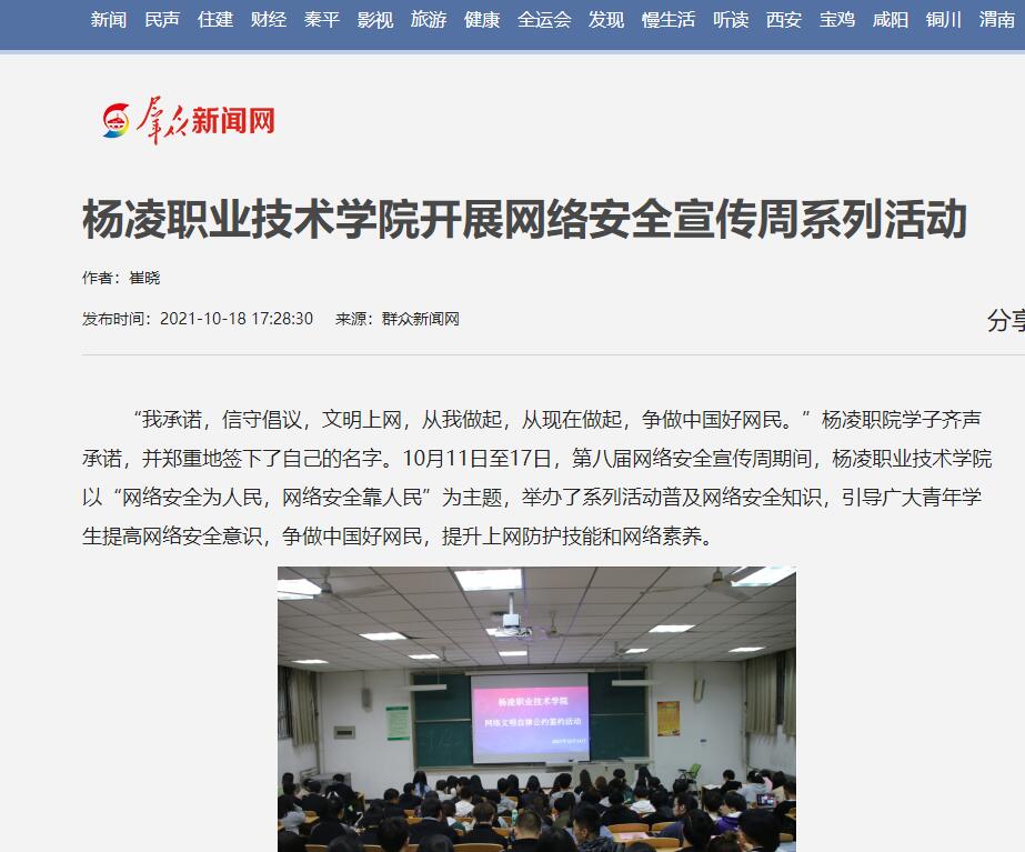 “我承诺,信守倡议,文明上网,从我做起,从现在做起,争做中国好网民。”杨凌职院学子齐声承诺,并郑重地签下了自己的名字。10月11日至17日,第八届网络安全宣传周期间,350vip浦京集团官网以“网络安全为人民,网络安全靠人民”为主题,举办了系列活动普及网络安全知识,引导广大青年学生提高网络安全意识,争做中国好网民,提升上网防护技能和网络素养。