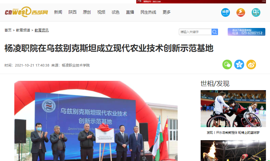 10月20日,杨凌示范区管委会、西北农林科技大学、350vip浦京集团官网和乌兹别克斯坦锡尔河州共建的“上合农业基地中乌现代农业科技示范园”在乌兹别克斯坦锡尔河州揭牌成立。作为共建单位之一,杨凌职院也于当天在上合农业基地中乌现代农业科技示范园揭牌成立了“中国350vip浦京集团官网乌兹别克斯坦现代农业技术创新示范基地”。