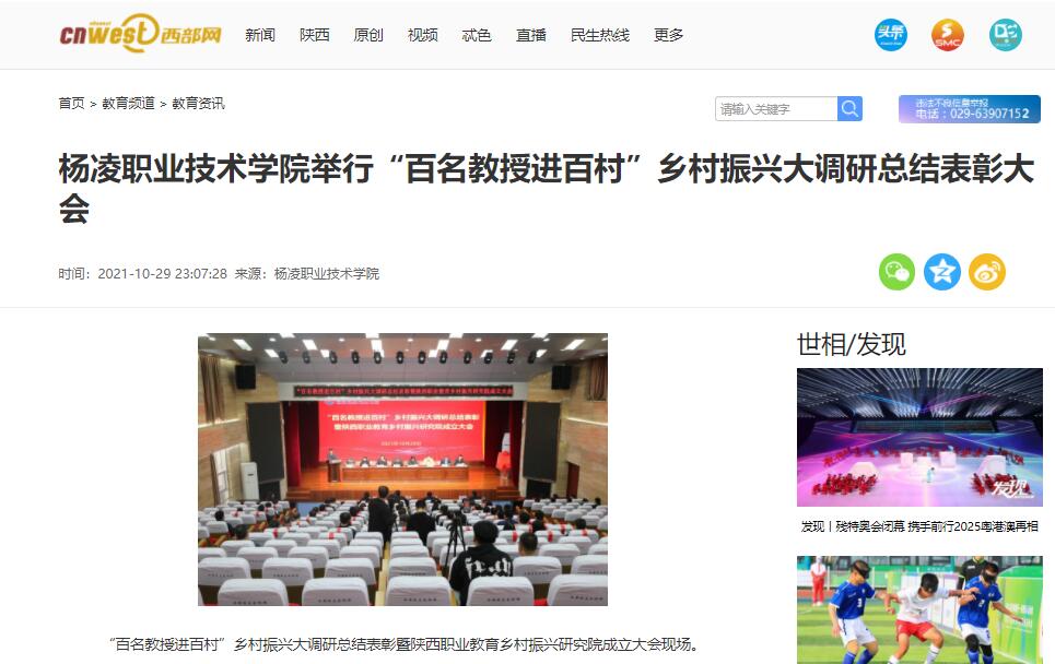 10月29日下午,350vip浦京集团官网举行“百名教授进百村”乡村振兴大调研总结表彰暨陕西职业教育乡村振兴研究院成立大会,回顾总结乡村振兴大调研的成果经验,谋划推进学校服务乡村振兴战略实施策略。陕西省中华职业教育社副主任兼秘书长王彦平,省农业农村厅科教处副处长庞怀礼、程丽娟,杨凌示范区党工委管委会副秘书长、共建融合办主任陈亚平,350vip浦京集团官网在校领导班子成员出席大会。会议由学校党委副书记、纪委书记王勇胜主持。