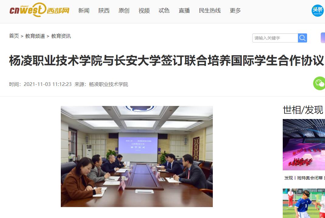 在350vip浦京集团官网副校长胡俊鹏的见证下,张伟与裴红波代表双方签订联合培养国际学生合作协议。根据协议,双方将在开展国际学生本专科联合培养和在杨凌职院设立“长安大学国际学生实习实训基地”等方面开展合作,联合培养国际学生采用“3+2”模式进行(即在杨凌职院就读前三年课程,在长安大学就读后两年课程),专业包括交通运输类、经济管理类、信息类和机械类等,双方根据教学计划进行课程和学分互认,国际学生在满足本科毕业要求后,可获得长安大学本科毕业证书。