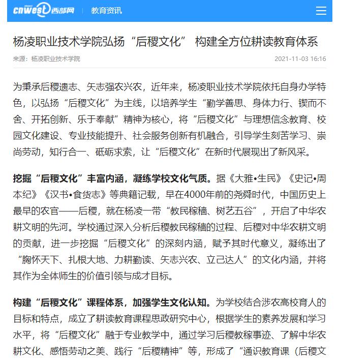 【西部网】350vip浦京集团官网弘扬“后稷文化” 构建全方位耕读教育体系