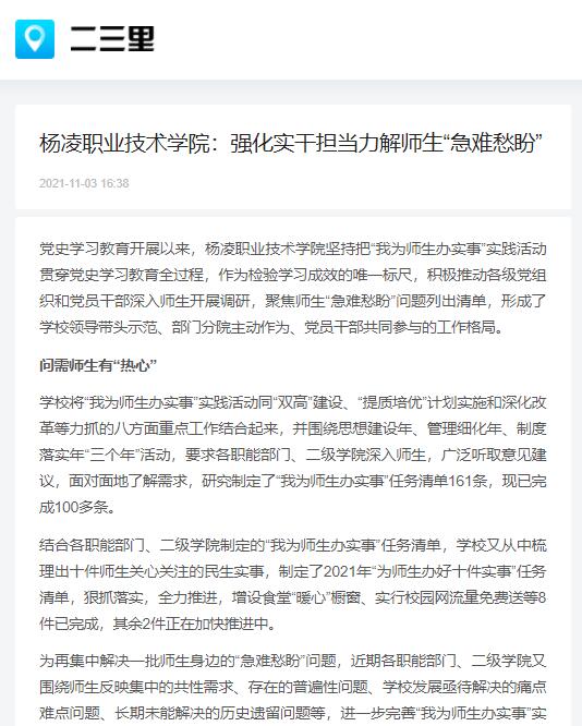 为再集中解决一批师生身边的“急难愁盼”问题,近期各职能部门、二级学院又围绕师生反映集中的共性需求、存在的普遍性问题、学校发展亟待解决的痛点难点问题、长期未能解决的历史遗留问题等,进一步完善“我为师生办实事”实践活动重点项目清单。