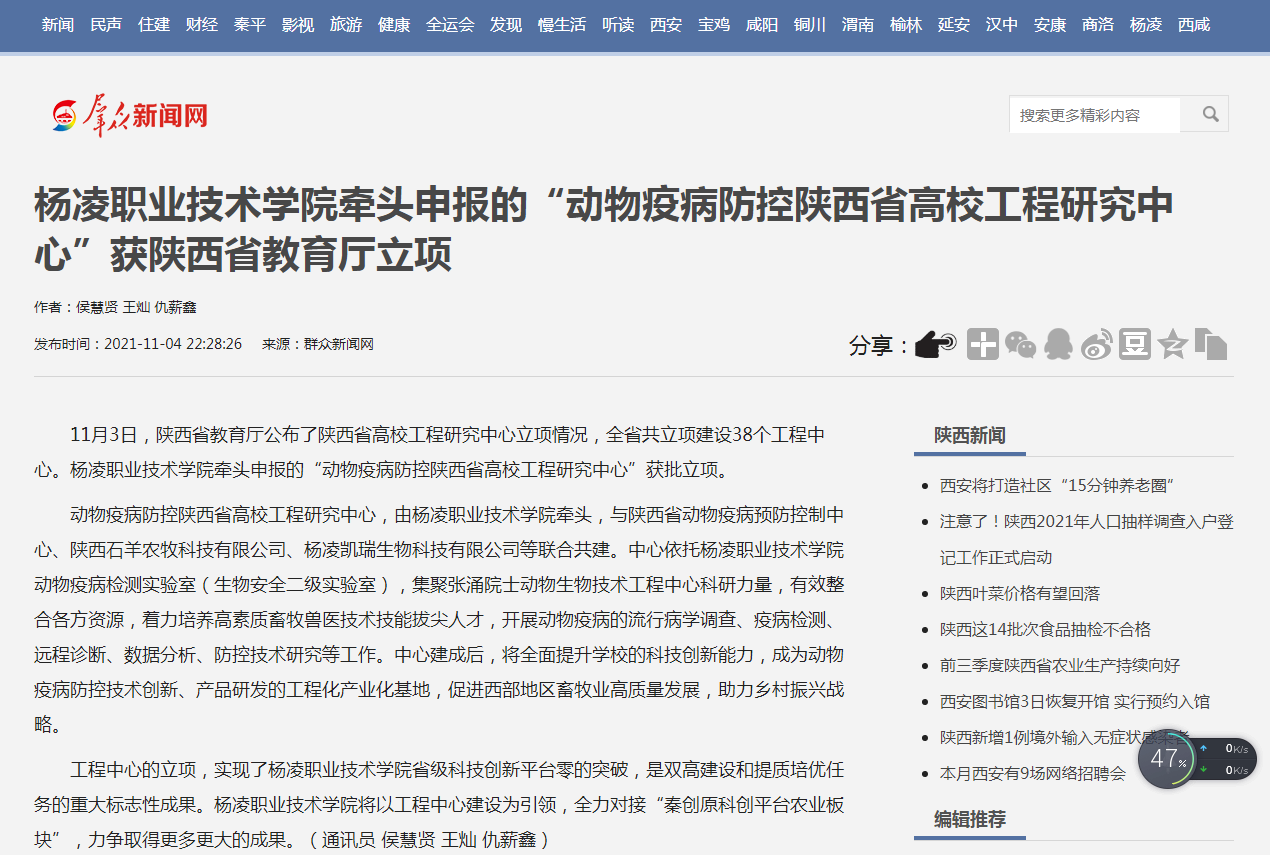 11月3日,陕西省教育厅公布了陕西省高校工程研究中心立项情况,全省共立项建设38个工程中心。350vip浦京集团官网牵头申报的“动物疫病防控陕西省高校工程研究中心”获批立项。