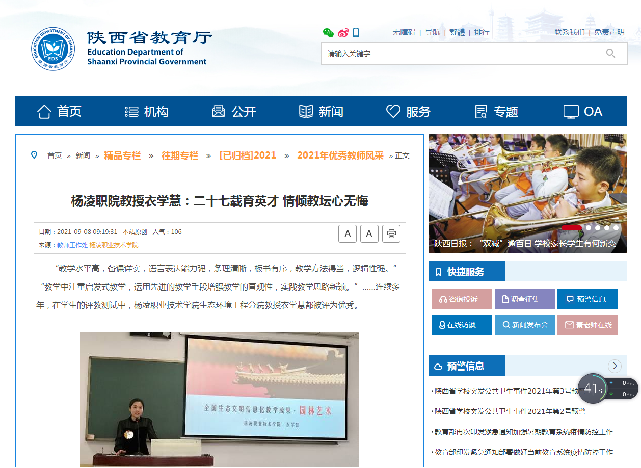 从事园林教学27年,在杨凌职院的三尺讲台上辛勤耕耘了27年,衣学慧把教书育人的光荣职责融进了每一堂课。兢兢业业、认真负责、严谨治学构成了她教育生涯一道亮丽的风景线。