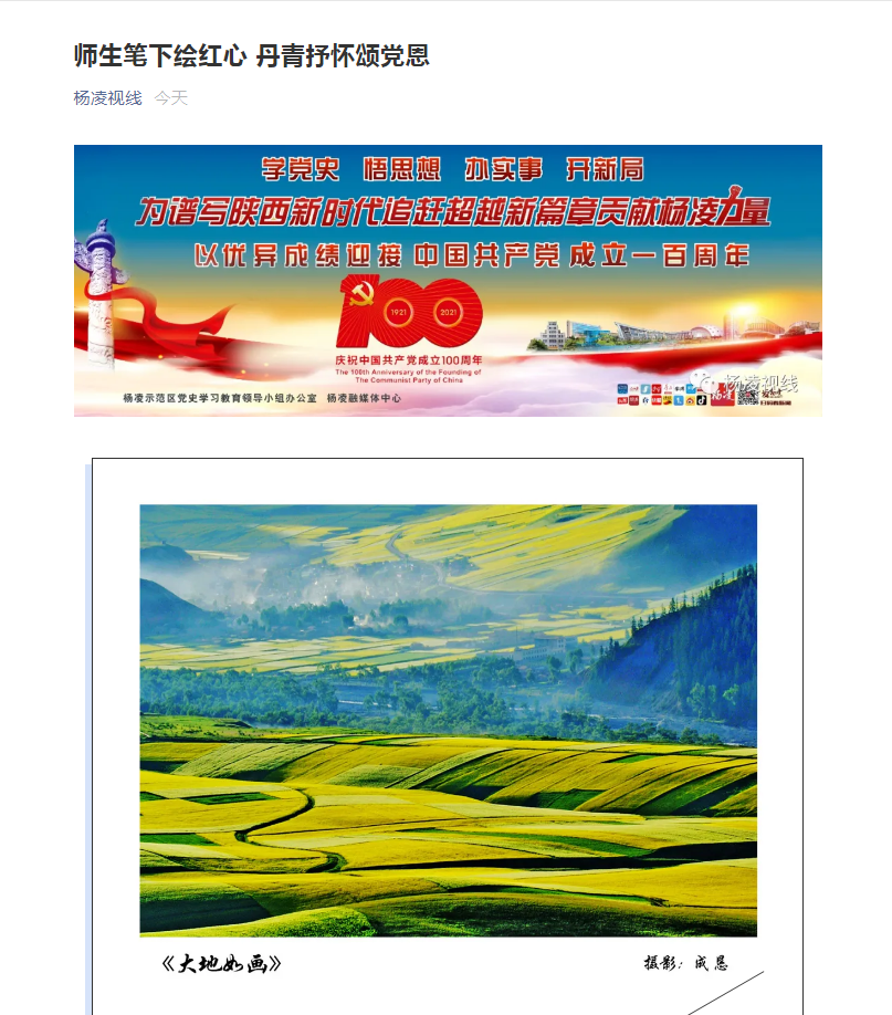 广大师生和校友以翰墨言志、以丹青抒怀、以光影记录,深情回顾了党的百年伟大历程,热情讴歌了在中国共产党领导下学校各项事业取得的辉煌成就,集中展示了一代代杨职人“永远跟党走 奋斗新时代”的责任担当、精神风貌和昂扬斗志。经遴选,入展书法绘画作品共80件、摄影作品共35件。