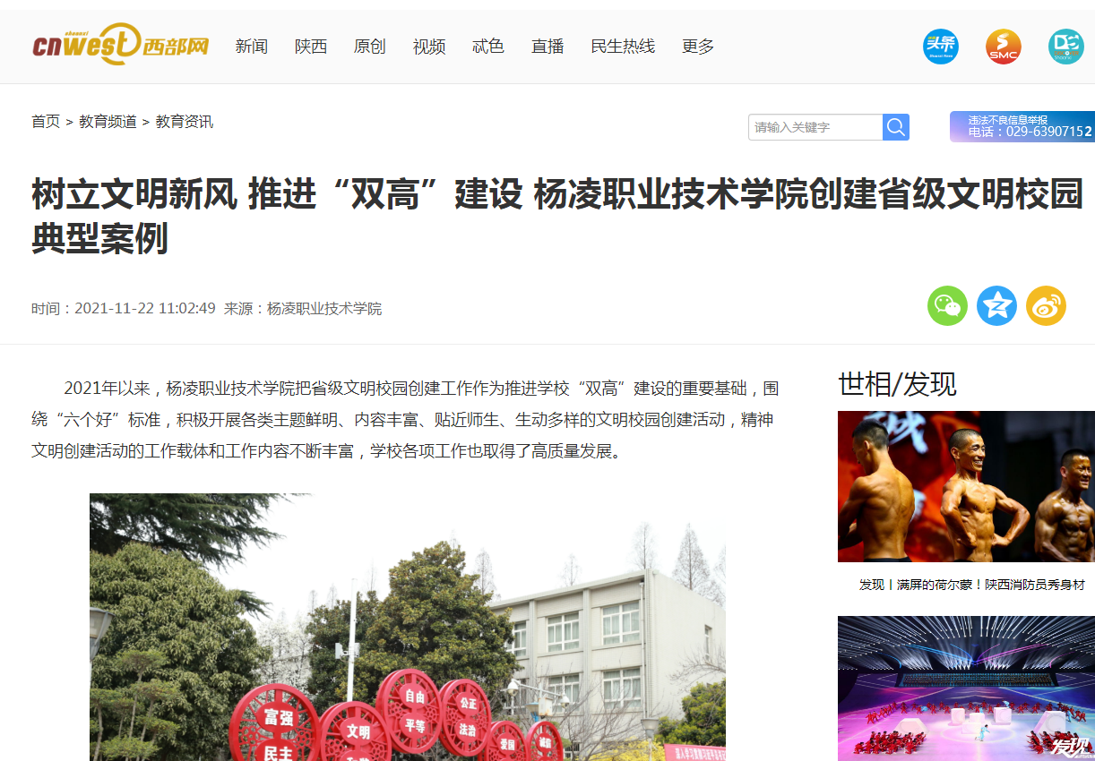 依托自身办学特色,以弘扬“后稷文化”为主线,深积极营造健康向上的校园文化。一是挖掘“后稷文化”丰富内涵,凝练学校文化气质。凝练出了“胸怀天下、扎根大地、力耕勤读、矢志兴农、立己达人”的文化内涵,并将其作为全体师生的价值引领与成才目标。二是成立“后稷书院”。邀请著名文化学者肖云儒、西北农林科技大学农史学家樊志民、榆林市委人才办主任加建新来校,分别为师生作了三场报告。三是建设耕读文化馆,构筑师生耕读研学基地。今年8月底建成的耕读文化馆面积达1000㎡,多维度、全景式阐述了耕读文化的历史积淀、人文精神和当代意义。开馆以来,各二级学院先后组织1920余名师生进馆学习,省内多所兄弟院校和杨凌中小学校学生前来参观。
