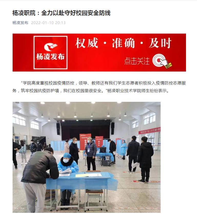 这只是学校疫情防控的一个缩影。在疫情防控紧要关头,杨凌职院党员干部冲在一线,全体师生众志成城,凝聚起同心抗疫的强大力量: