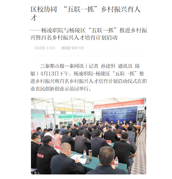 【秦闻】区校协同 “五联一抓”乡村振兴育人才——杨凌职院与杨陵区“五联一抓”推进乡村振兴暨百名乡村振兴人才培育计划启动