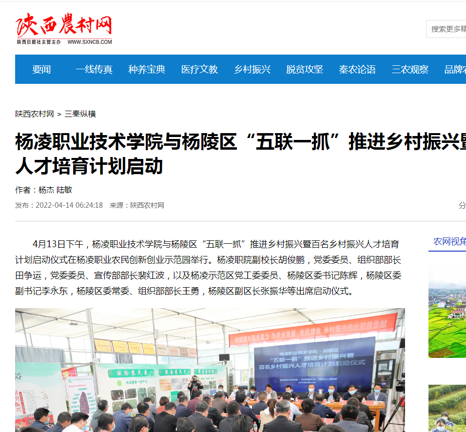 参加启动仪式的还有杨凌职院科技与教育研究处、继续教育与培训学院相关负责人,承担“五联一抓”工作的15个包抓工作队队长,以及杨凌示范区、杨陵区相关部门、各镇办负责人和15个包抓村的党支部书记。(记者 杨杰 通讯员 陆敏)