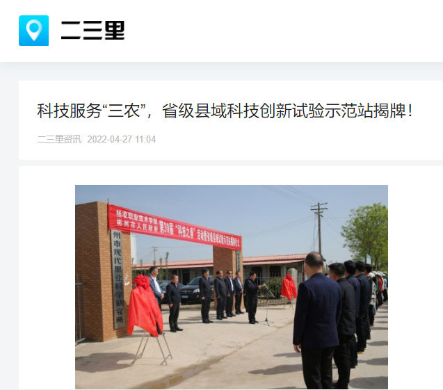 2021年12月,杨凌职院彬州市农业科技创新试验示范站被认定为省级县域科技创新试验示范站。该示范站围绕彬州市农业产业结构调整及农业发展,先后开展试验研究和示范推广课题(项目)共140多项。下一步,学校将以省级县域科技创新试验示范站建设为契机,加大各方面支持力度,立足彬州市粮油、果业以及生态循环农业发展定位,充分发挥学校农业专业人才特色优势,创新思路,持续探索“农科教、产学研”新模式,力争将彬州基地办的更好。