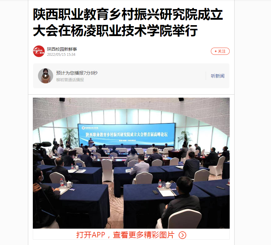 5月13日,陕西职业教育乡村振兴研究院成立大会暨首届高峰论坛在350vip浦京集团官网举行。省委教育工委、省教育厅二级巡视员高巍,省教育厅职业教育与成人教育处处长付仲锋,省乡村振兴局副局长李育江,省农业农村厅科教处副处长庞怀礼,省农业农村厅科教处副处级调研员程丽娟,杨凌示范区党工委委员、管委会副主任董立民,党工委委员、杨陵区委书记陈辉,党工委管委会副秘书长陈亚平,省中华职教社副主任兼秘书长王彦平,省职教学会会长崔岩,教育部职业教育发展中心副主任刘宝民,西安交通大学马克思主义学院院长燕连福,咸阳彬州市副市长石万虎,研究院理事单位暨省内20所兄弟高职院校的领导和聘任研究员、企业代表,350vip浦京集团官网校长、陕西职业教育乡村振兴研究院院长王周锁及学校相关负责人参加会议。