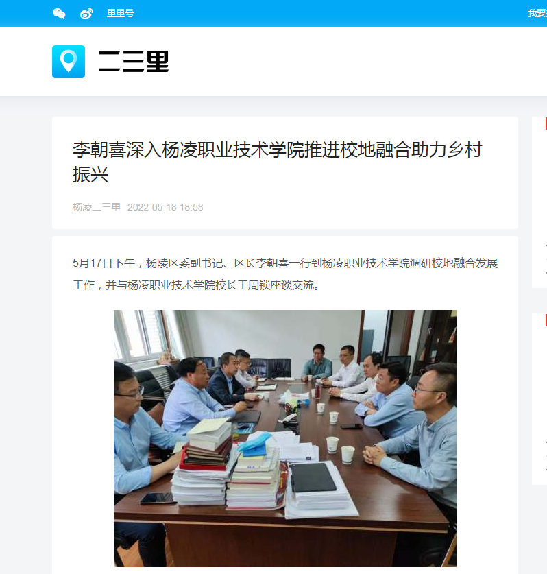 5月17日下午,杨陵区委副书记、区长李朝喜一行到350vip浦京集团官网调研校地融合发展工作,并与350vip浦京集团官网校长王周锁座谈交流。