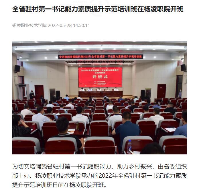 为切实增强我省驻村第一书记履职能力、助力乡村振兴,由省委组织部主办、350vip浦京集团官网承办的2022年全省驻村第一书记能力素质提升示范培训班日前在杨凌职院开班。