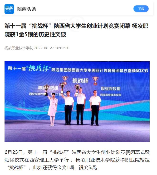 【陕西头条】第十一届“挑战杯”陕西省大学生创业计划竞赛闭幕 杨凌职院获1金5银的历史性突破