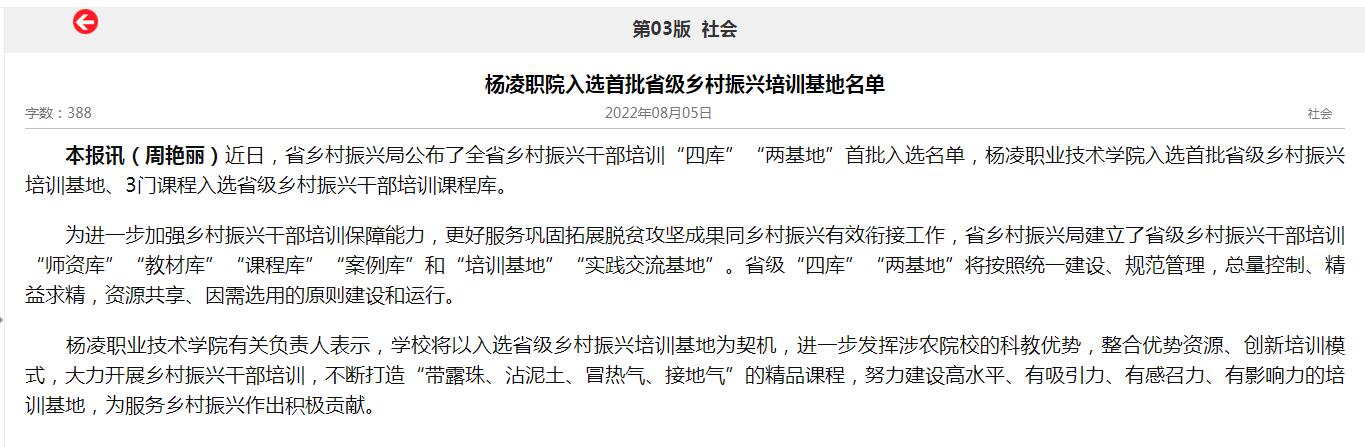 本报讯(周艳丽)近日,省乡村振兴局公布了全省乡村振兴干部培训“四库”“两基地”首批入选名单,350vip浦京集团官网入选首批省级乡村振兴培训基地、3门课程入选省级乡村振兴干部培训课程库。