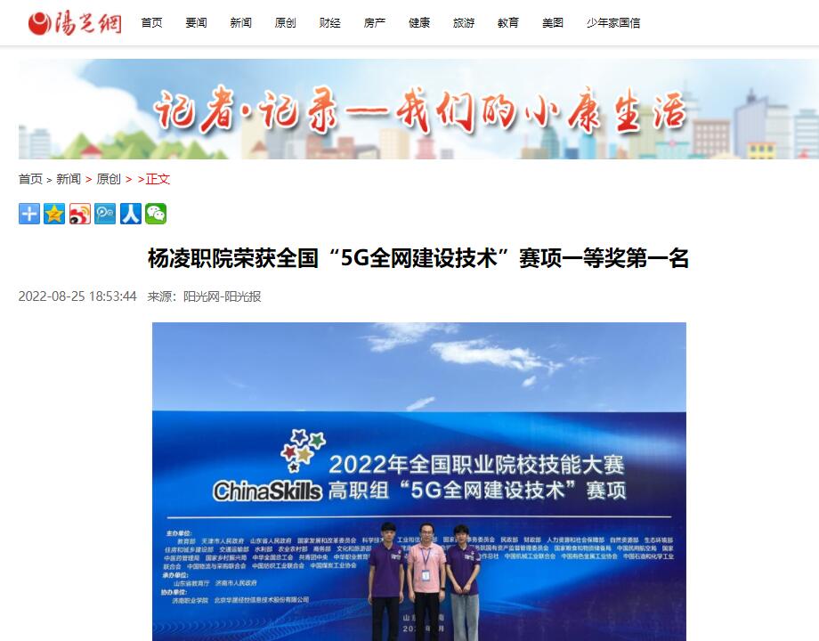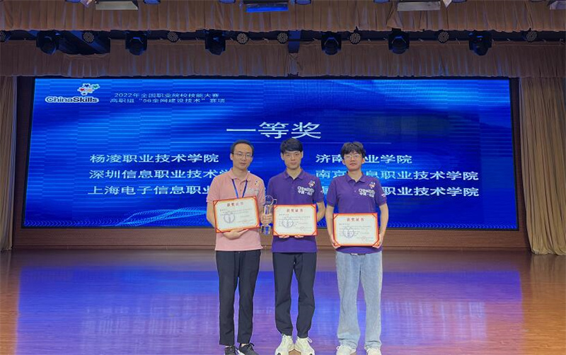 阳光讯(陈阳 崔晓 记者 赵小康)8月22日至23日,2022年全国职业院校技能大赛高职组“5G全网建设技术”赛项在济南职业学院举办,来自全国28个省、56支代表队、112名选手参加了比赛。经过8个小时的激烈比拼,350vip浦京集团官网信息工程学院学生郑嘉昊、曹文森以总分排名全国第一的成绩,荣获一等奖第一名,取得杨凌职院自参赛以来历史最好成绩,指导教师康晋、陈高锋荣获大赛优秀指导教师奖。