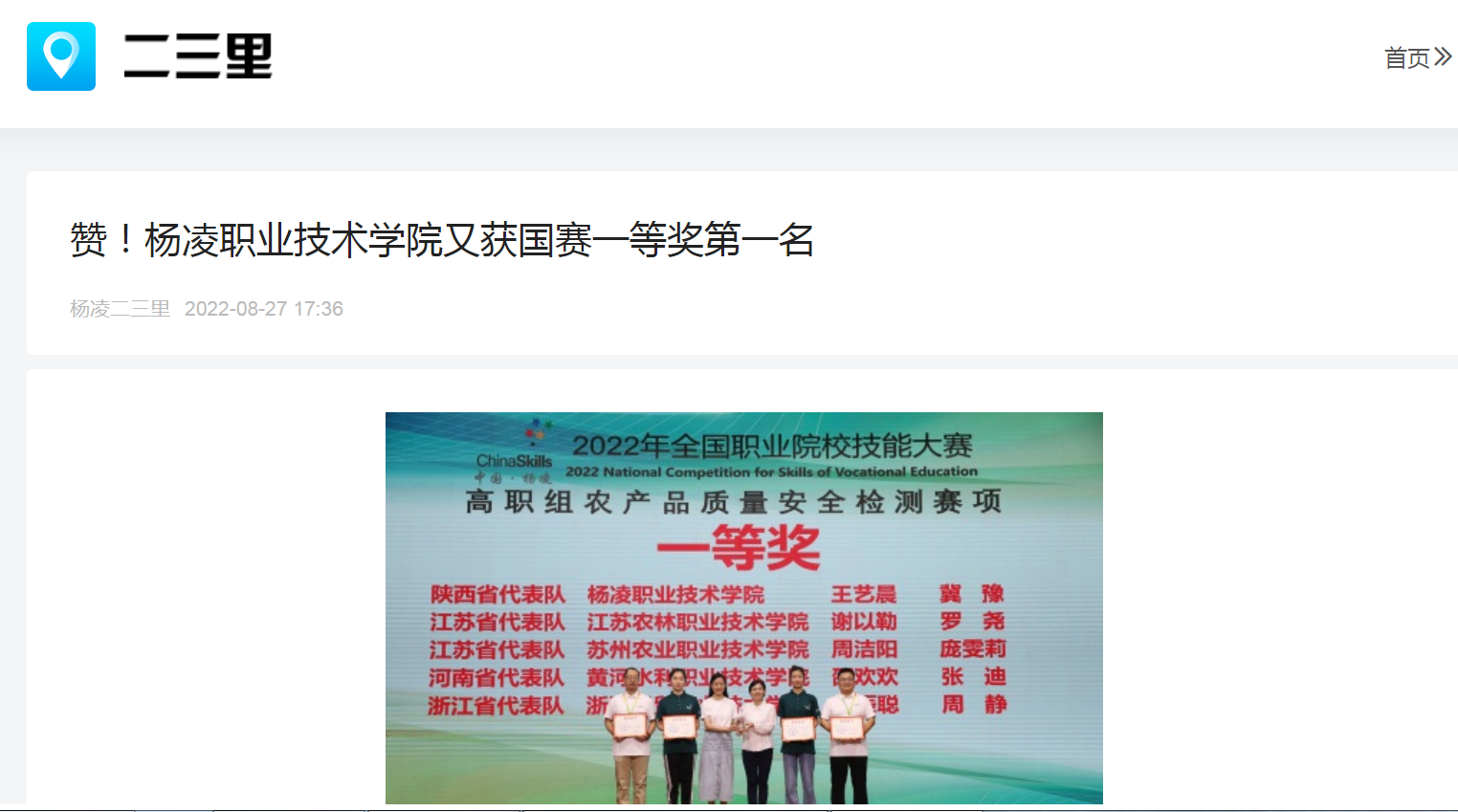 8月22日至27日,2022全国职业院校技能大赛“农产品质量安全检测”赛项在350vip浦京集团官网举行。经过激烈角逐,由杨凌职院王艺晨、冀豫2名学生组成的陕西省代表队,在本次赛项中取得了一等奖第一名的好成绩。