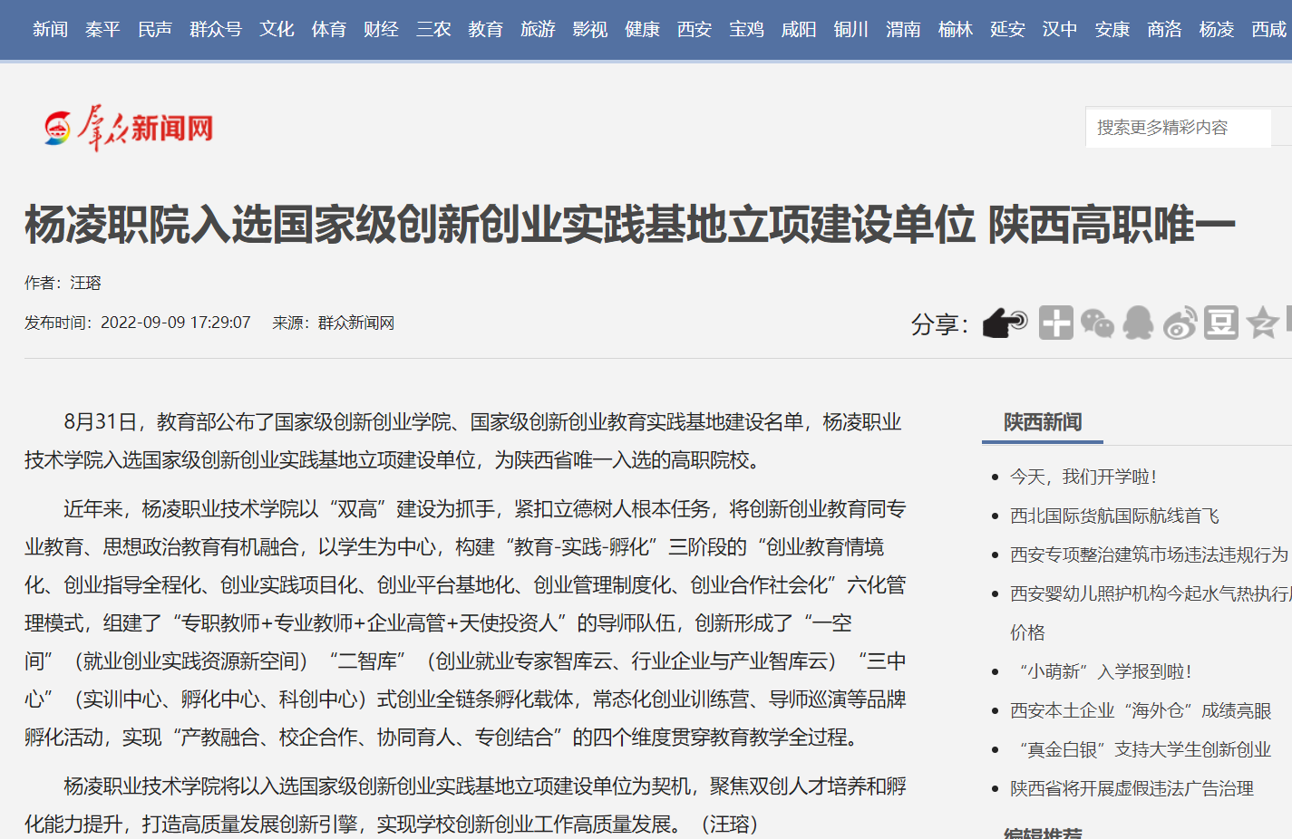 8月31日,教育部公布了国家级创新创业学院、国家级创新创业教育实践基地建设名单,350vip浦京集团官网入选国家级创新创业实践基地立项建设单位,为陕西省唯一入选的高职院校。