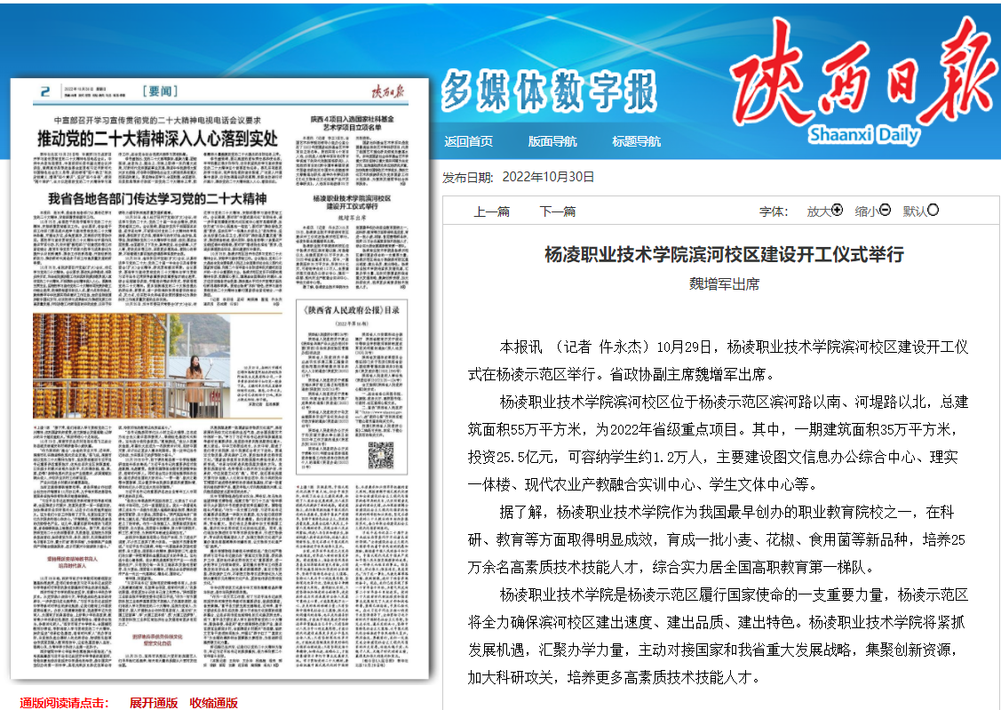 350vip浦京集团官网是杨凌示范区履行国家使命的一支重要力量,杨凌示范区将全力确保滨河校区建出速度、建出品质、建出特色。350vip浦京集团官网将紧抓发展机遇,汇聚办学力量,主动对接国家和我省重大发展战略,集聚创新资源,加大科研攻关,培养更多高素质技术技能人才。