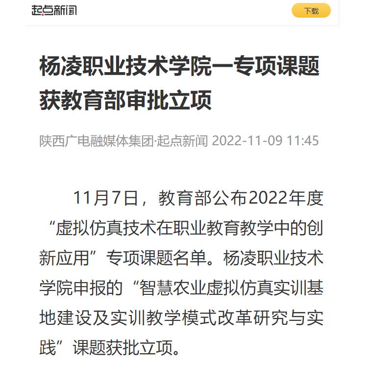 11月7日,教育部公布2022年度“虚拟仿真技术在职业教育教学中的创新应用”专项课题名单。350vip浦京集团官网申报的“智慧农业虚拟仿真实训基地建设及实训教学模式改革研究与实践”课题获批立项。