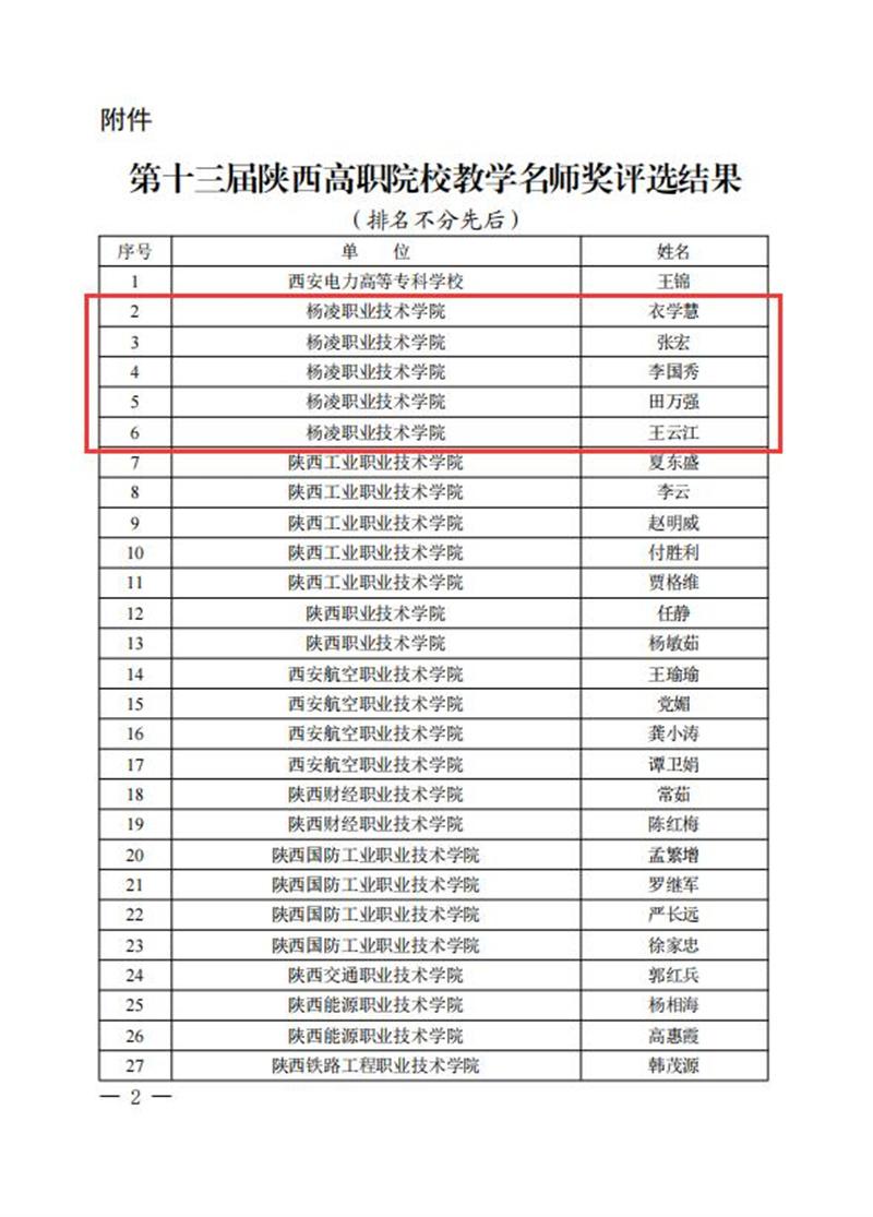 近日,省教育厅公布了关于表彰第十三届陕西高职院校教学名师奖获奖教师的通知,350vip浦京集团官网衣学慧、张宏、李国秀、田万强、王云江5位教授获评第十三届陕西高职院校教学名师奖。