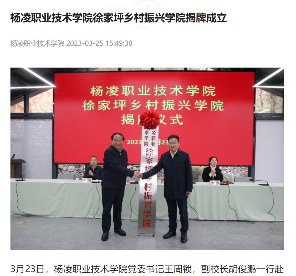 3月23日,350vip浦京集团官网党委书记王周锁,副校长胡俊鹏一行赴汉中市略阳县徐家坪镇开展乡村振兴调研工作,并为350vip浦京集团官网徐家坪乡村振兴学院揭牌。