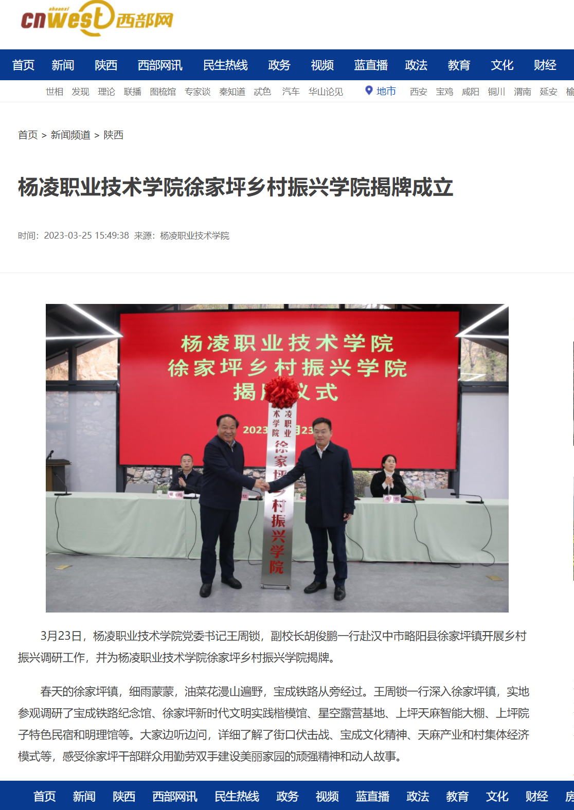 3月23日,350vip浦京集团官网党委书记王周锁,副校长胡俊鹏一行赴汉中市略阳县徐家坪镇开展乡村振兴调研工作,并为350vip浦京集团官网徐家坪乡村振兴学院揭牌。