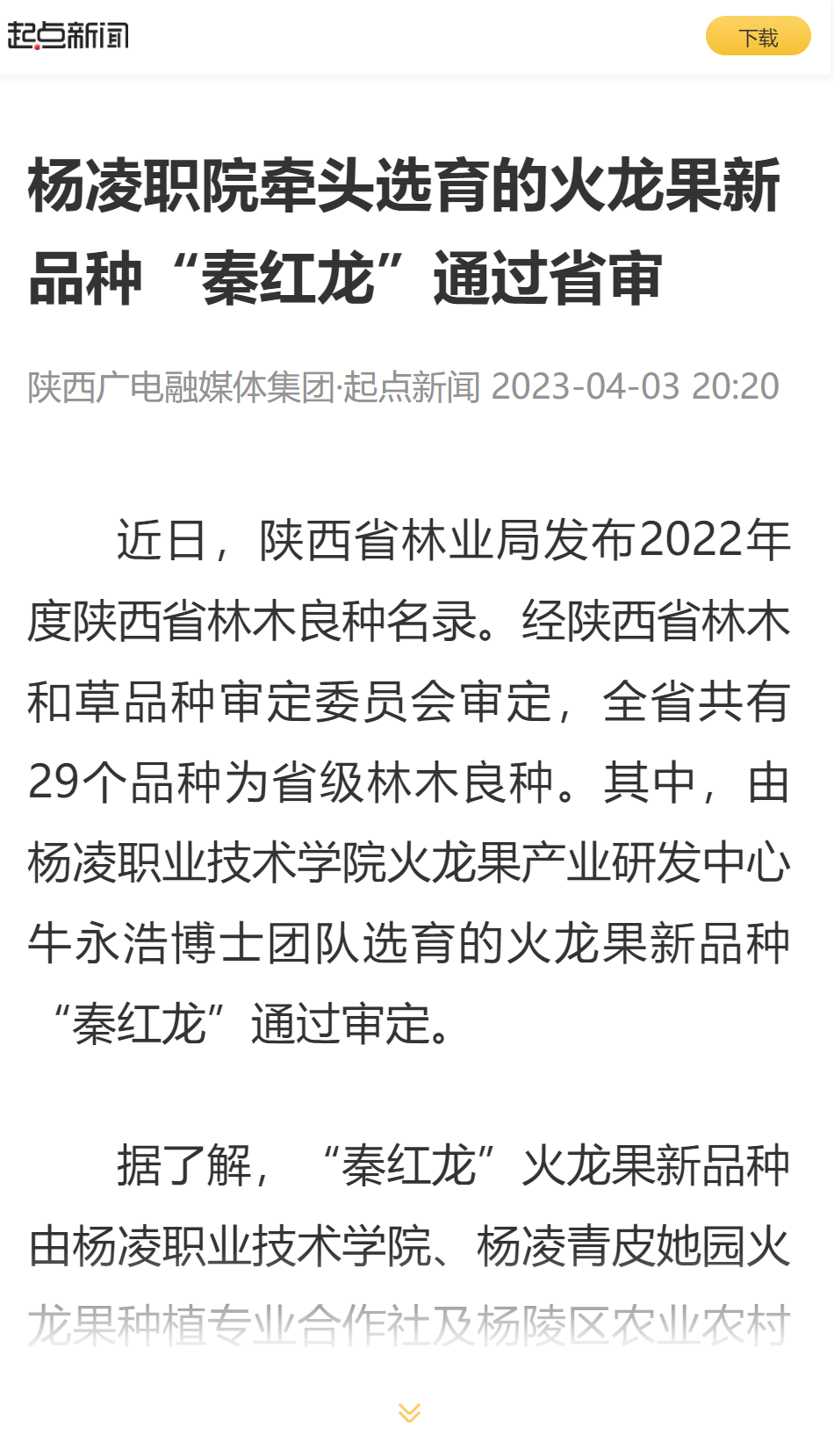近日,陕西省林业局发布2022年度陕西省林木良种名录。经陕西省林木和草品种审定委员会审定,全省共有29个品种为省级林木良种。其中,由350vip浦京集团官网火龙果产业研发中心牛永浩博士团队选育的火龙果新品种“秦红龙”通过审定。