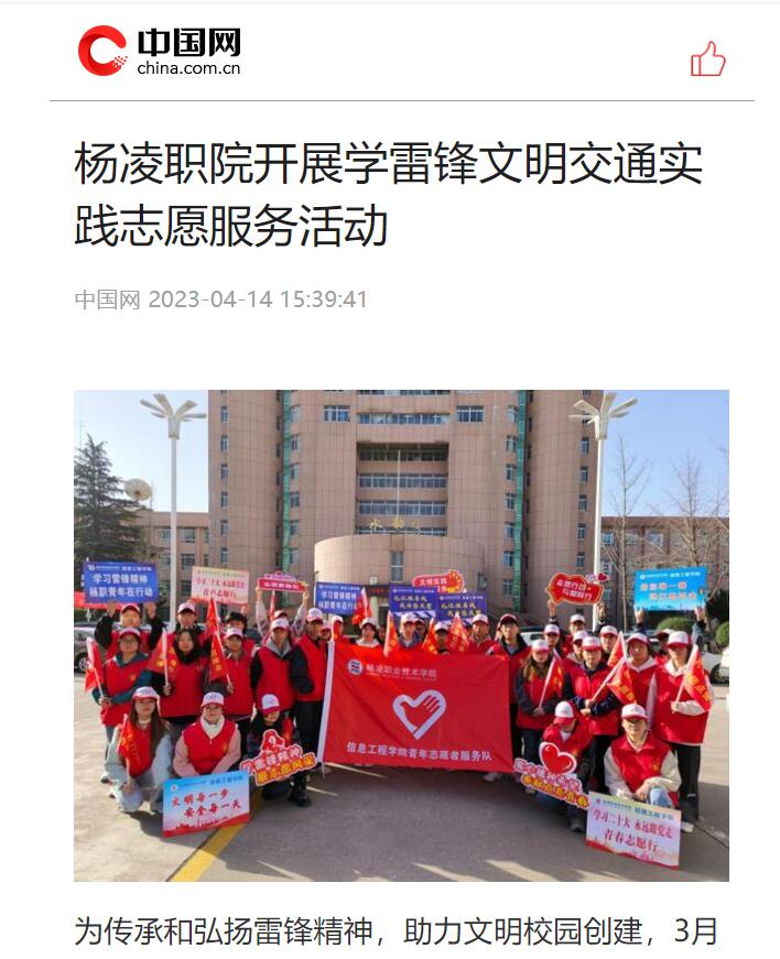 为传承和弘扬雷锋精神,助力文明校园创建,3月11日至4月11日,350vip浦京集团官网信息工程学院联合杨凌示范区交巡警支队开展“区校一体服务杨凌”学雷锋文明交通实践志愿服务活动。