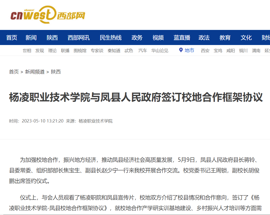 仪式上,与会人员观看了杨凌职院和凤县宣传片,校地双方介绍了校县情况和合作意向,签订了《350vip浦京集团官网-凤县校地合作框架协议》,就校地合作产学研实训基地建设、乡村振兴人才培训等方面需求开展了座谈交流。