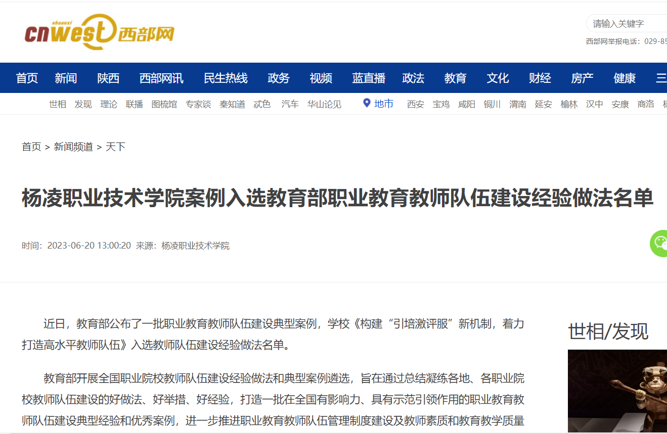 近年来,学校高度重视教师队伍建设,构建了以“高质量引才、多渠道培养、多维度激励、创新人才评价体系、全心意服务人才”为指导思想的高水平教师队伍建设机制,不断激发教师干事创业推力拉力、提高师资队伍建设水平。此次入选,是对学校师资队伍建设工作的高度肯定,学校将以此次入选为契机,持续完善师资队伍建设体制机制和平台保障,聚焦服务专业人才培养和区域经济发展,聚力打造更加适合现代职业教育改革需求的高水平“双师型”教师队伍,为我国职业教育的高质量发展贡献“杨职力量”。