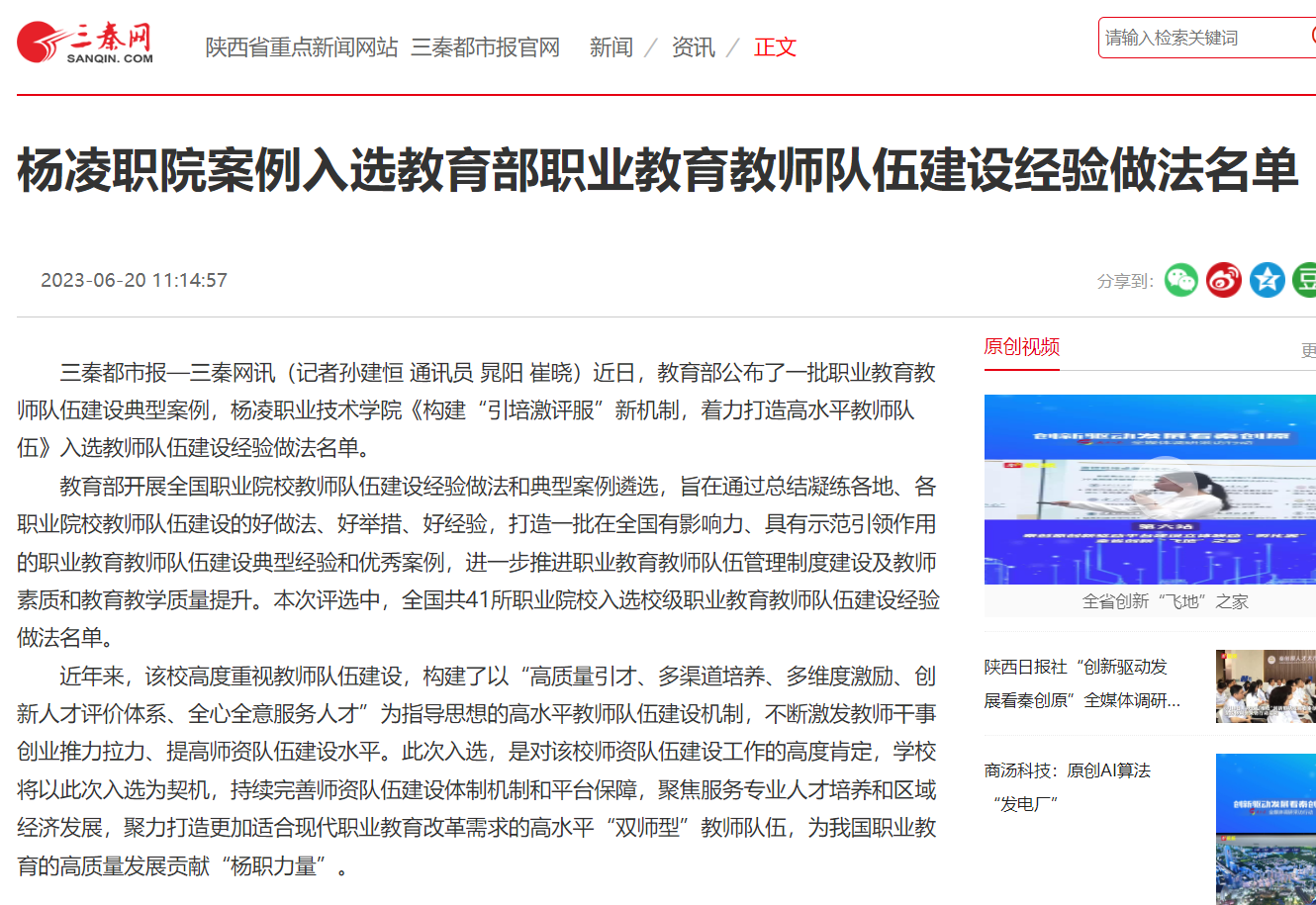 三秦都市报—三秦网讯(记者孙建恒 通讯员 晁阳 崔晓)近日,教育部公布了一批职业教育教师队伍建设典型案例,350vip浦京集团官网《构建“引培激评服”新机制,着力打造高水平教师队伍》入选教师队伍建设经验做法名单。