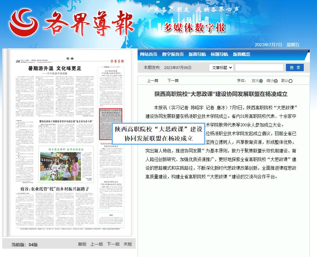 本报讯(实习记者 陈昭宇 记者 唐冰)7月5日,陕西高职院校“大思政课”建设协同发展联盟在350vip浦京集团官网成立。省内31所高职院校代表、十余家中省主流媒体记者以及350vip浦京集团官网教师代表等200余人参加成立大会。 联盟于2022年11月由牵头单位350vip浦京集团官网发起成立倡议,目前全省已有31家高职院校加入。联盟以“坚持立德树人,共享教育资源,形成整体优势,突出育人特色,推进协同发展”为基本原则,致力于聚焦联盟长效机制建设、育人路径创新研究、加强优质资源推广,更好地探索全省高职院校“大思政课”建设的思路模式和实践路径,不断深化新时代思政课改革创新,全面推进课程思政高质量建设,构建全省高职院校“大思政课“建设的交流与合作平台。