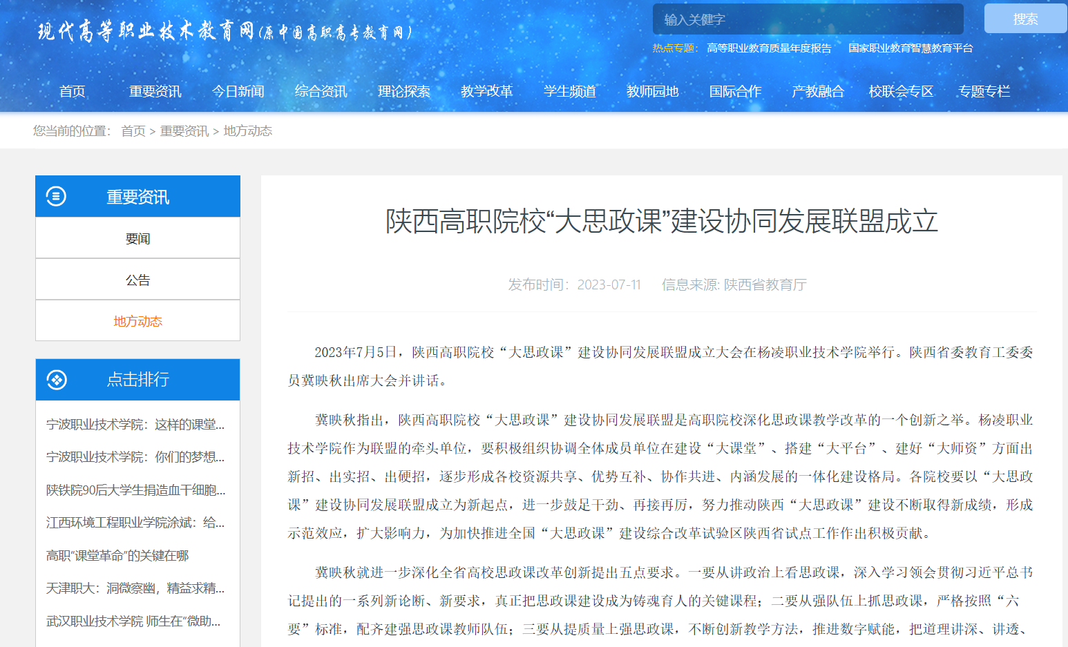 2023年7月5日,陕西高职院校“大思政课”建设协同发展联盟成立大会在350vip浦京集团官网举行。陕西省委教育工委委员冀映秋出席大会并讲话。