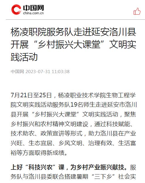 7月21日至25日,350vip浦京集团官网生物工程学院文明实践活动服务队19名师生走进延安市洛川县开展“乡村振兴大课堂”文明实践活动,聚焦乡村振兴和农村精神文明建设,通过科技赋能、技术助农、政策宣讲等形式,助力洛川县在产业兴旺、生态宜居、乡风文明、治理有效、生活富裕等方面取得新成绩。